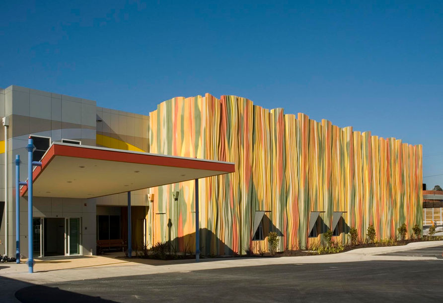 The hand-painted, multi-coloured precast external walls of the new centre reflect a vibrant natural environment and present strong visual cues directing vehicles from the highway and passengers disembarking at the relocated bus stop.
